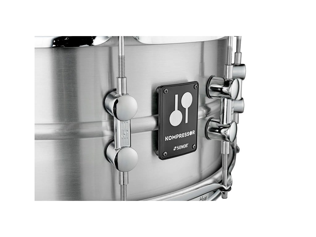 Sonor Kompressor – nová séria bubnov značky Sonor ponúka širokú škálu rozmerov a materiálov, aby si každý hráč mohol vybrať nástroj podľa svojich potrieb. Korpusy sú vyrobené z ocele, hliníka alebo mosadze a na výber sú 13„ aj 14“ bubny v rôznych hĺbkach. Použitá technológia Optimum Shell Measurements (OSM) znamená, že priemer korpusu je mierne zmenšený, čo zaručuje lepší kontakt okrajov s blánou pre optimálnu rezonanciu. Stabilitu ladenia zaručuje systém TuneSafe, ktorý pomáha udržať ladiace skrutky vo svojej polohe. Nástroj je vybavený 2,3 mm oceľovými ohýbanými ráfikmi a jednoduchou, ale odolnou mechanikou strunenia. To všetko dopĺňajú blany Remo USA. Ide o veľmi univerzálne a plne profesionálne bubny.Dodatočné parametre